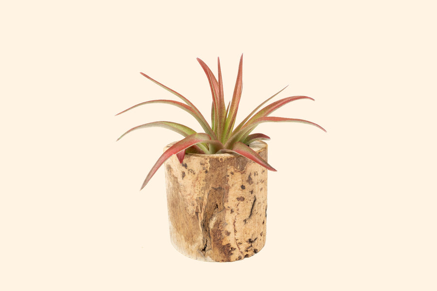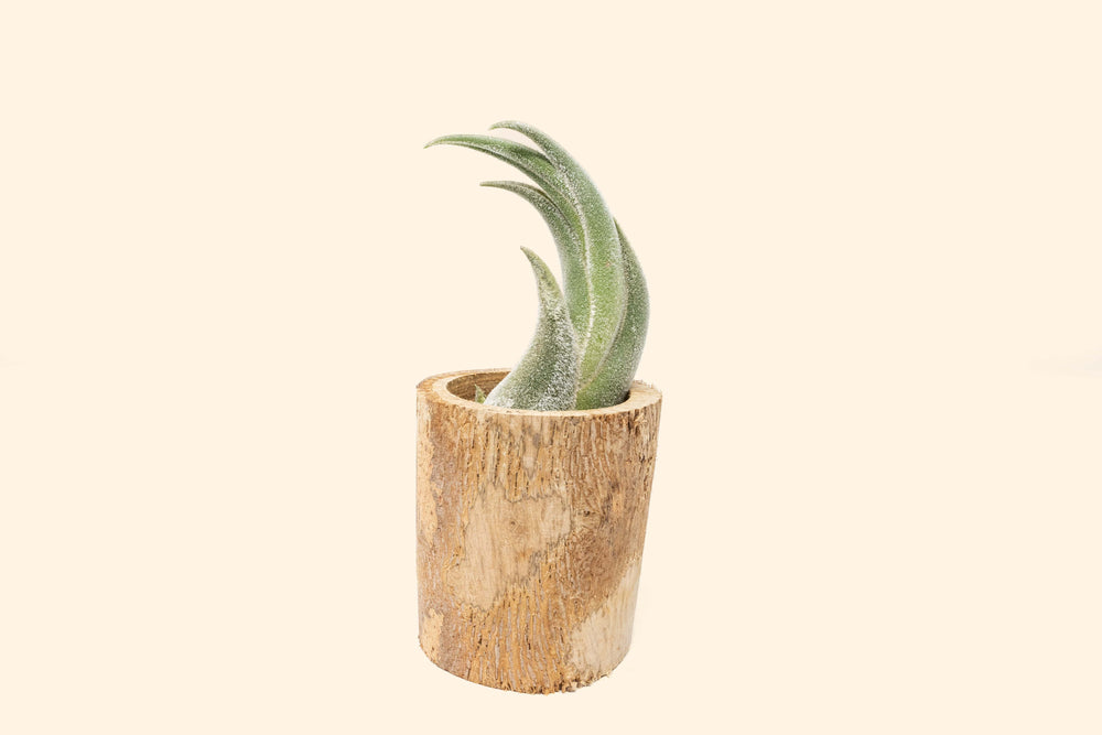 Our driftwood containers are excellent vessels for our medium to larger tillandsias. One arrangement makes for a thoughtful earthy accessory or arrange them in threes or fives for centerpieces and table settings. Some cracks and slight variations in color will occur as they are a naturally sourced product. Air Plant included.