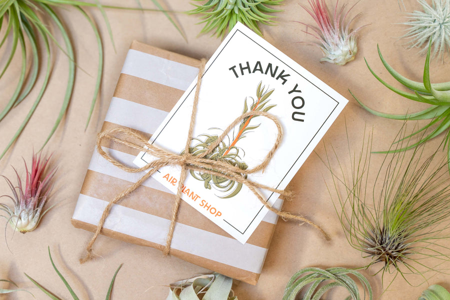 Customize your air plant gift with a lovely hand-written note to show appreciation or thanks. Please note, that we do not transcribe electronic gift notes. These are meant to be filled out by the gift-giver. Our illustrated Xerographica cards are printed on thick, linen-like paper to make an impression or even be displayed by the giftee.