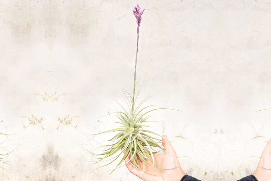 Tillandsia Purpurea, a Peruvian native, is one of the few air plants that boast fragrant flowers. When in bloom, purpurea sends out tall bloom spikes that become lined with delicate, lavender flowers. Most people relate the fragrance to that of cinnamon. In addition, they are a relatively quick grower that readily produces off-sets of "pups" from the base. In short order, your Purpurea will clump into a beautiful specimen.