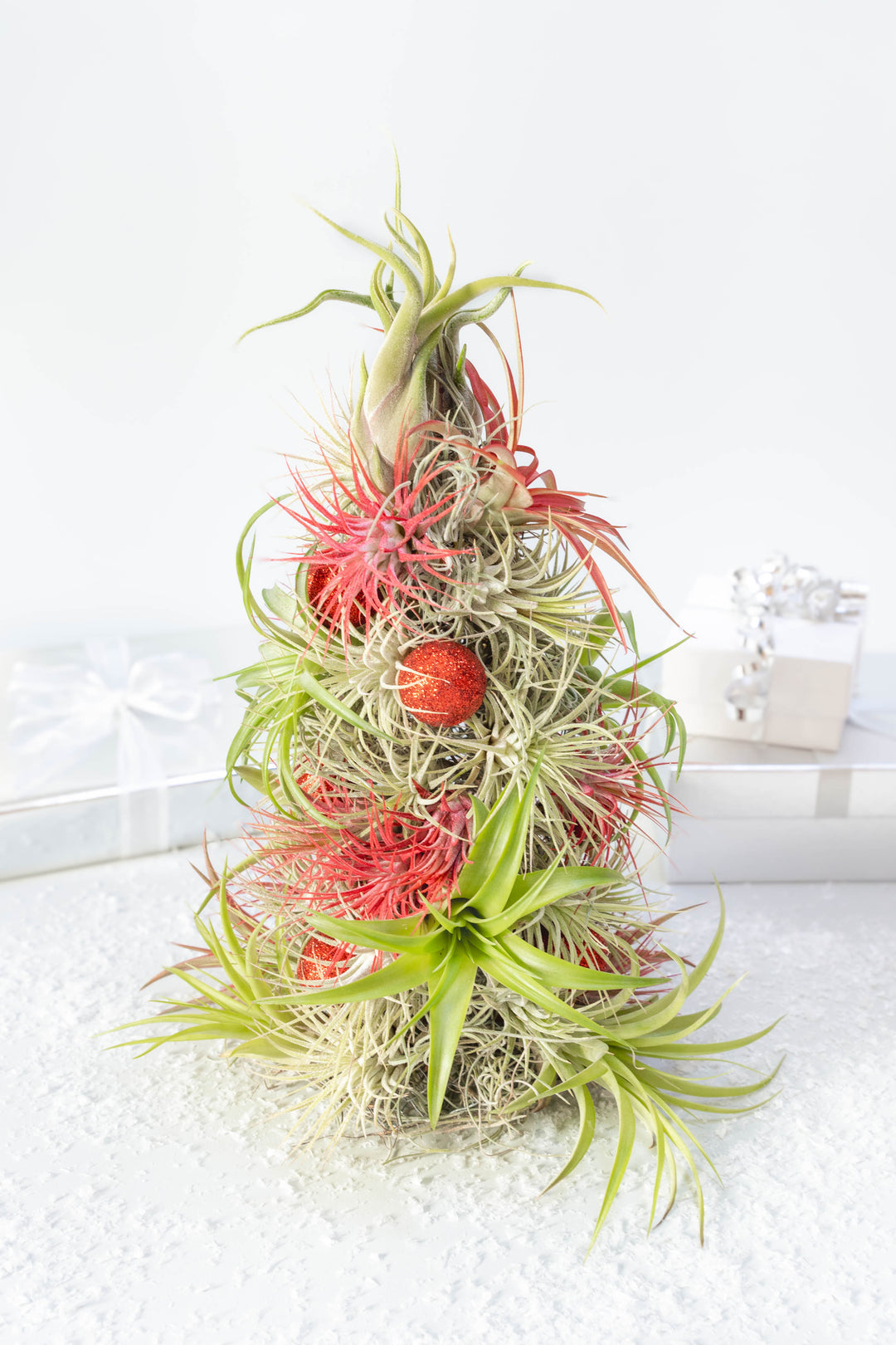 Spread cheer this holiday season with a one-of-a-kind, handmade, living Christmas Tree featuring 50 beautiful air plants. Each air plant has been lovingly placed on a custom mesh cone filled with Spanish Moss and measures about 12 inches tall.